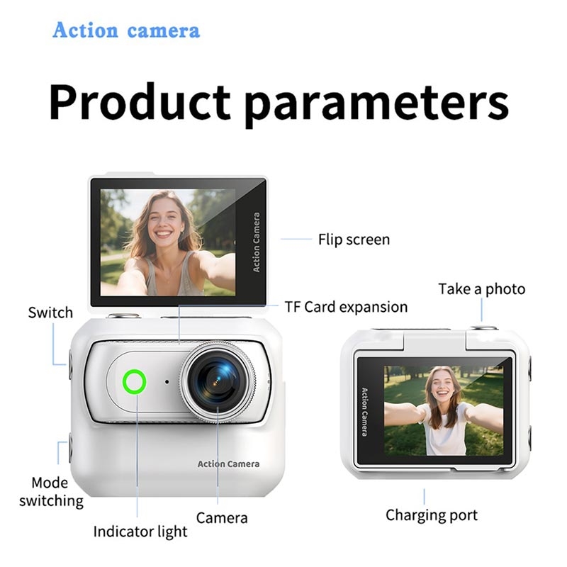 Concepută pentru flexibilitate, această mini-cameră sportivă suportă multiple moduri de filmare, inclusiv video, foto, mișcare lentă, time-lapse și efecte de oglindă ND, făcând-o potrivită atât pentru înregistrări ocazionale, cât și pentru conținut mai creativ. Designul său portabil vă permite să o montați pe un șnur de gât, pălărie, cască, ghidonul bicicletei sau alte suprafețe compatibile, în timp ce suportul pentru baterie extinsă vă ajută să filmați mai mult timp când sunteți în mișcare.
