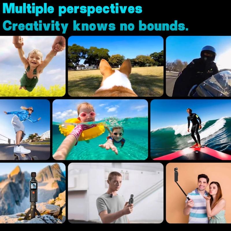 LK2316 Cameră de acțiune portabilă 4K Ultra HD - stabilizare rotativă Gimbal, vedere pe timp de noapte, streaming Wi-Fi și card de memorie de 32 GB