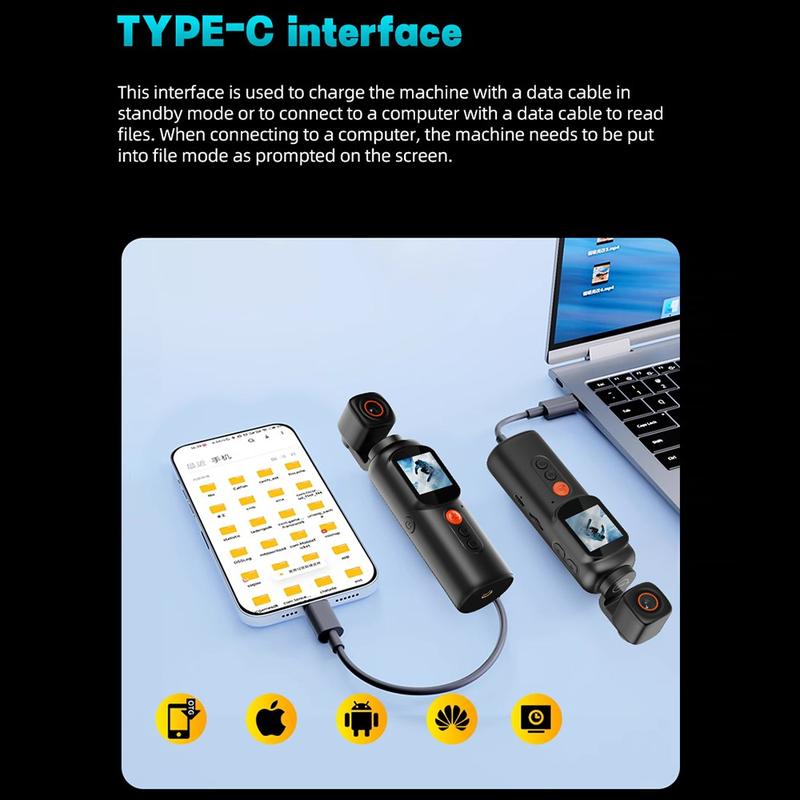 - Gimbal rotativ și Anti-Shake - Asigură filmări stabile și fluide în mișcare.