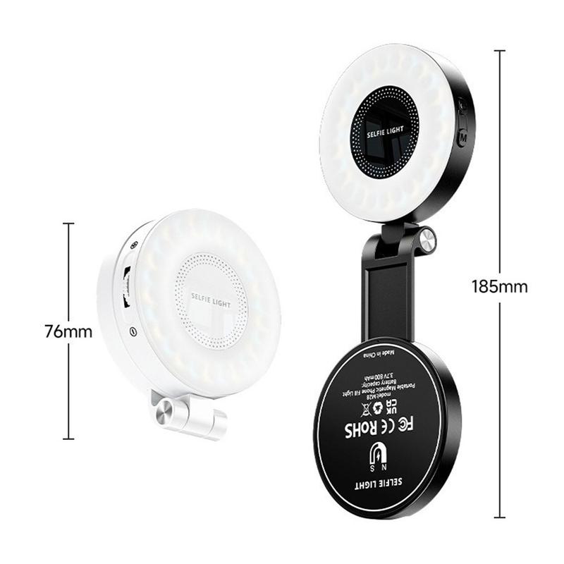 Lumină de umplere cu LED-uri de buzunar magnetic M28 - Lampă Selfie cu oglindă, cu temperatură de 3 culori, portabilă și portabilă