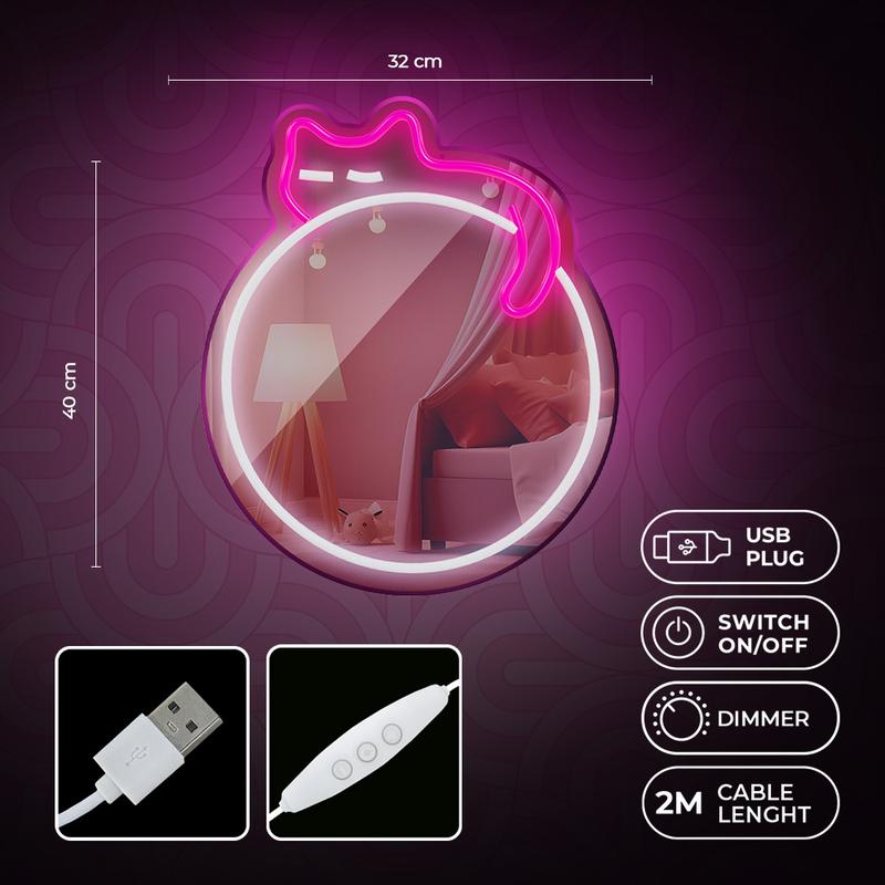 Îmbunătățiți-vă interiorul cu Neon MIRROR LED, un amestec perfect de iluminare ambientală și o oglindă practică înconjurată de o ramă neon elegantă. Lumina LED creează o atmosferă confortabilă și relaxantă, ceea ce o face ideală atât pentru decorarea locuinței, cât și pentru utilizarea zilnică. Aplicația sa versatilă o face o piesă remarcabilă în saloanele de servicii, precum și în spațiile rezidențiale.