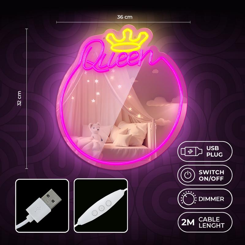 Îmbunătățiți-vă interiorul cu Neon MIRROR LED, un amestec perfect de iluminare ambientală și o oglindă practică înconjurată de o ramă neon elegantă. Lumina LED creează o atmosferă confortabilă și relaxantă, ceea ce o face ideală atât pentru decorarea locuinței, cât și pentru utilizarea zilnică. Aplicația sa versatilă o face o piesă remarcabilă în saloanele de servicii, precum și în spațiile rezidențiale.