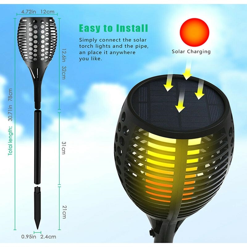 Aceste lumini solare pentru stâlpi aduc efecte de flacără calde și pâlpâitoare în grădina, aleea, terasa sau curtea dvs. Cu 96 de LED-uri, tehnologie de încărcare solară și construcție impermeabilă, acestea se aprind automat pe timp de noapte pentru a crea o atmosferă invitantă și decorativă în aer liber.