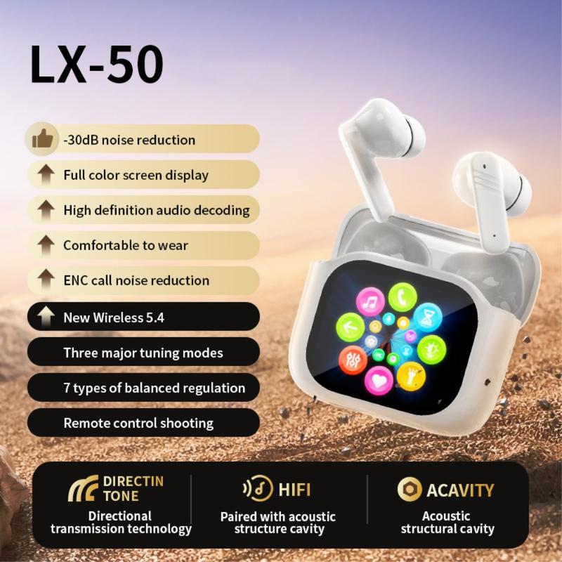 LX-50 Căști adevărate fără fir cu carcasă de încărcare cu ecran tactil - ANC+ENC, Bluetooth 5.4