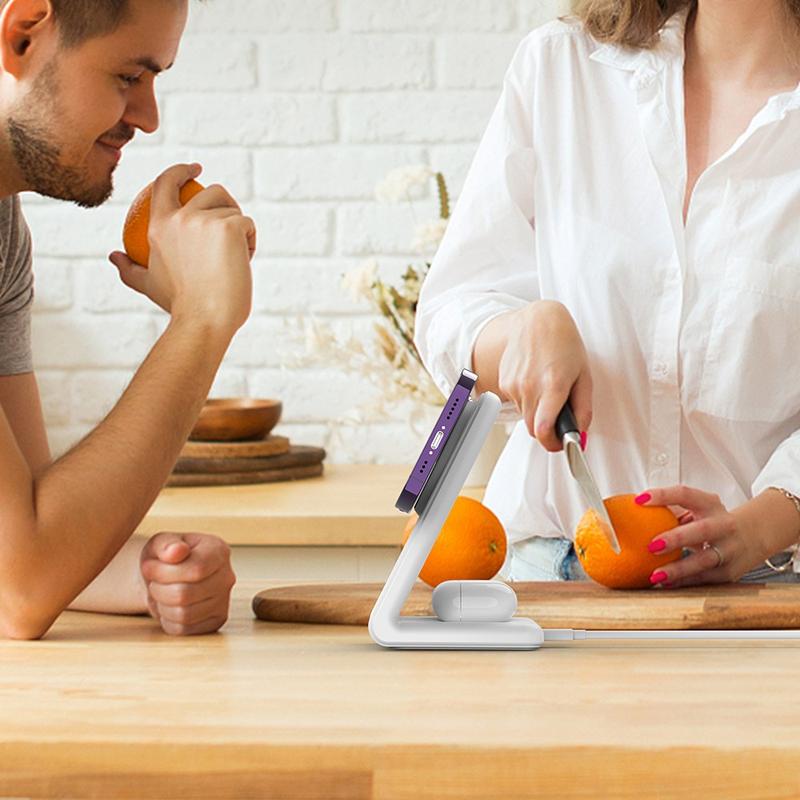 Utilizați telefonul cu mâinile libere în timp ce se încarcă - ideal pentru apeluri video, vizionarea conținutului sau citirea notificărilor. Designul vertical ergonomic vă menține ecranul vizibil și spațiul de lucru ordonat.