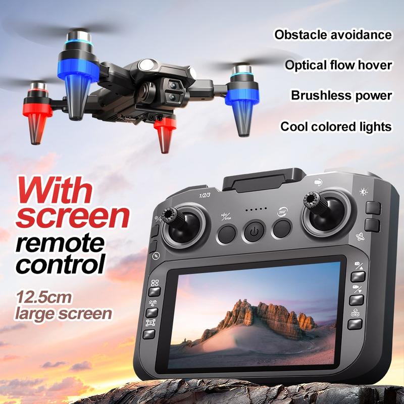 M9 Motor fără perii FPV Drone - Quadcopter pliabil cu două camere HD, flux optic, evitarea obstacolelor, controler cu ecran și 3 baterii
