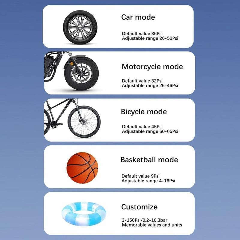 - Putere de înaltă presiune: Umflă până la 150 PSI, potrivit pentru o gamă largă de dimensiuni ale anvelopelor.