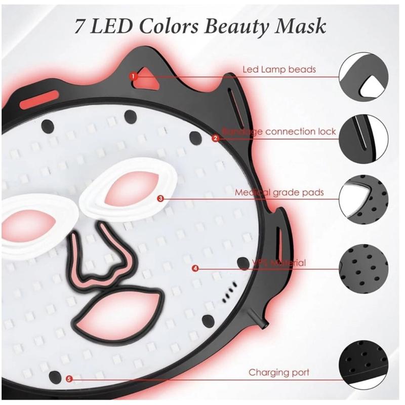 SP-1103A - Mască facială pentru terapie cu lumină LED în 7 culori - Mască wireless din silicon pentru îngrijirea pielii cu fotoni, dotată cu controler digital