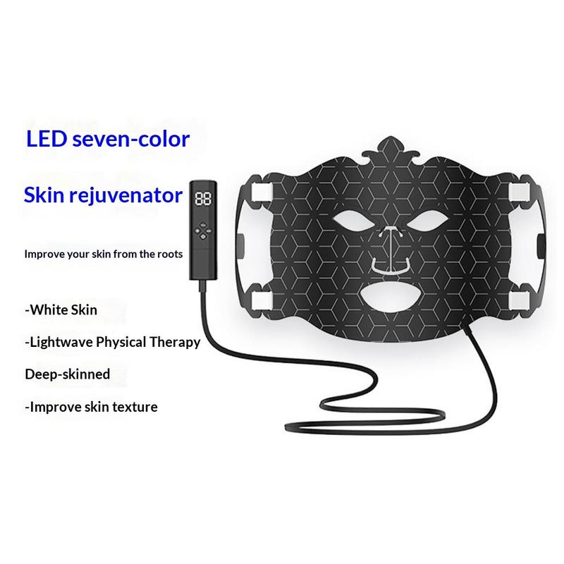 Mască facială cu LED-uri în 7 culori pentru întinerirea pielii - Aparat de înfrumusețare cu terapie prin lumină din silicon, cu 87 de LED-uri și luminozitate reglabilă