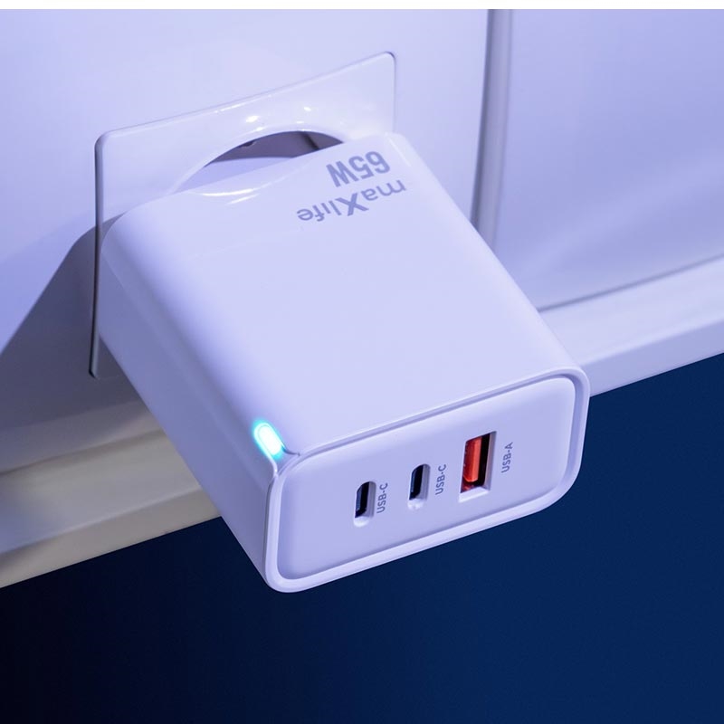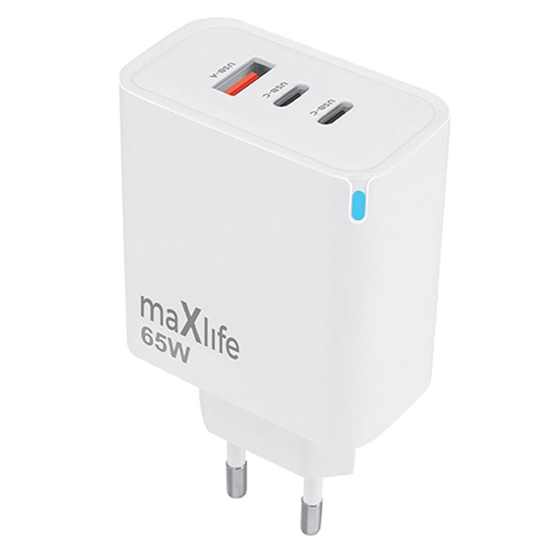 Maxlife MXTC-09-65ACC Încărcător GaN - Adaptor de încărcare rapidă 65W cu 2 porturi USB-C PD și 1 port USB-A QC