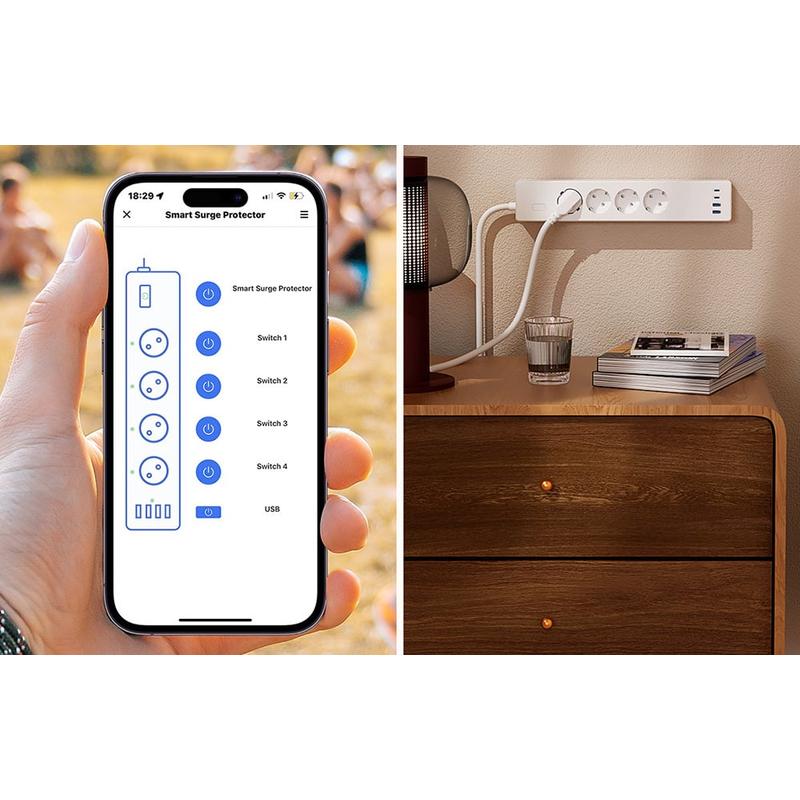 Folosind aplicația Meross sau un ecosistem compatibil Matter, puteți porni sau opri independent fiecare dintre cele patru prize, precum și controla grupul de porturi USB. Gestionați-vă dispozitivele de oriunde - fie că sunteți acasă, la serviciu sau în călătorie.