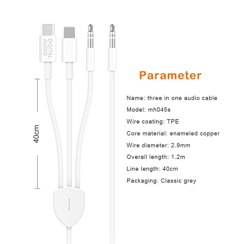 MH045S Cablu audio auto 3 în 1 - USB-C, Lightning, 3.5mm - Adaptor stereo universal pentru smartphone-uri și tablete