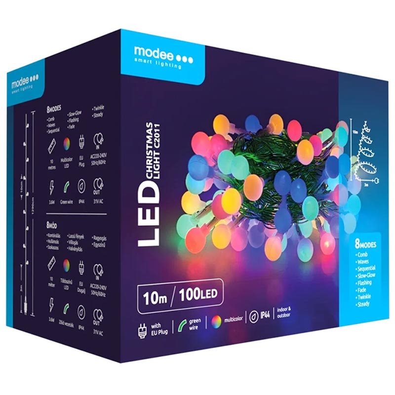 Modee C2011 RGB Lumini pentru pomul de Crăciun - șir de 10m cu 100 LED-uri, 8 moduri, interior / exterior, IP44