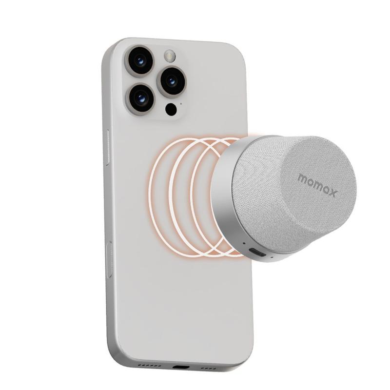 • Momax 1-Vibe Go BS6 Mini difuzor Bluetooth magnetic și suport pentru telefon, sunet 360° și rezistență la apă IPX6