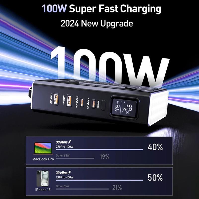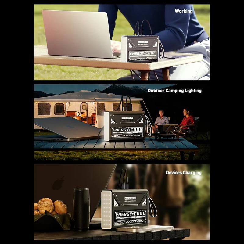 O baterie de 70000mAh / 259 Wh poate reîncărca un smartphone obișnuit de până la 15 ori sau un laptop de 13 inchi de 4 ori, ceea ce îl face unul dintre încărcătoarele portabile cu cea mai mare capacitate disponibile pentru călătorii și utilizare în caz de urgență.