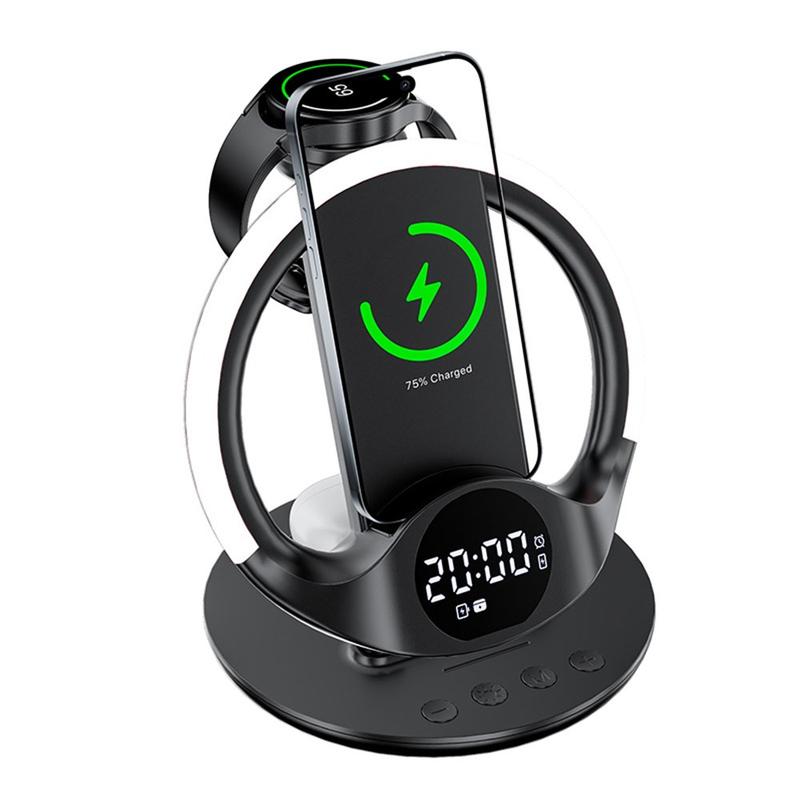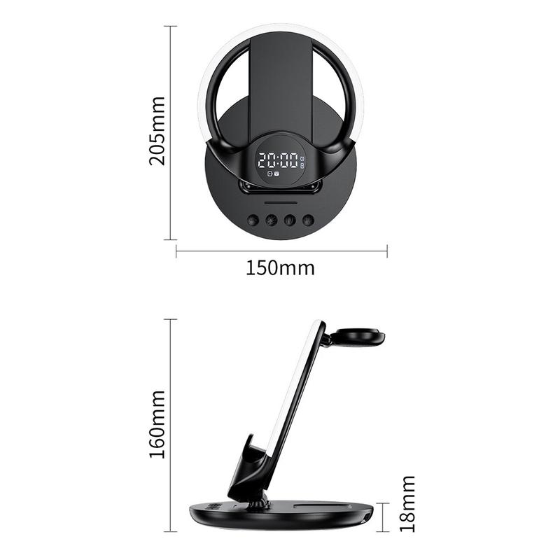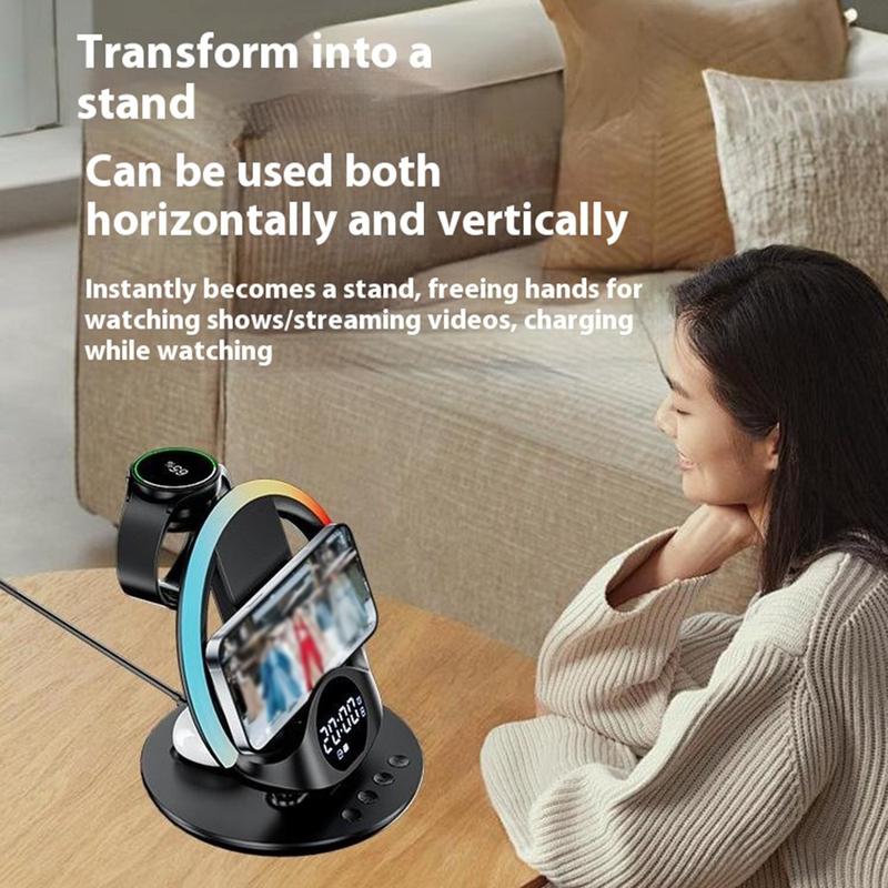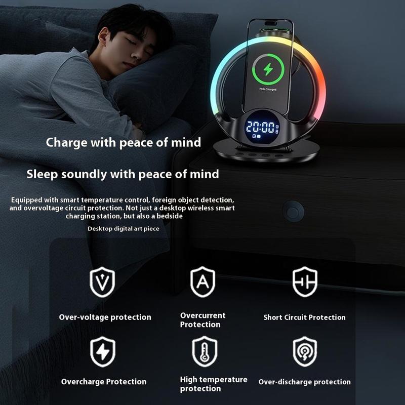 N01 Stație de încărcare wireless 6 în 1 / Suport magnetic de încărcare rapidă cu ceas cu alarmă, control inteligent al temperaturii și lumină de noapte