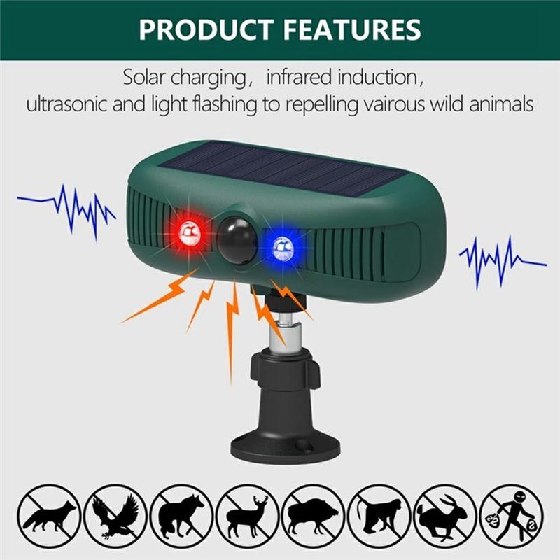 - Repelent pentru animale activat prin mișcare cu alerte sonore și luminoase