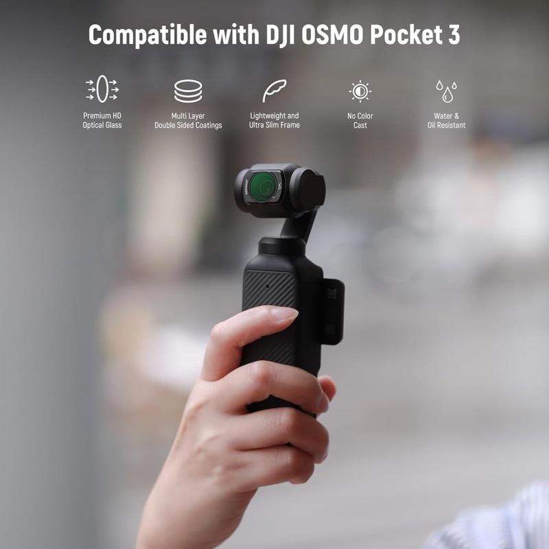 Construit din sticlă optică HD, fiecare filtru are 30 de straturi de acoperiri multifuncționale pe ambele părți. Aceste acoperiri fac filtrele hidrofobe, rezistente la zgârieturi și la uleiuri, asigurând durabilitatea și performanța optică constantă în diferite condiții de mediu. Ramele filtrelor sunt fabricate din aliaj de aluminiu ușor, dar robust, prelucrate cu precizie CNC pentru a se integra perfect cu Osmo Pocket 3 fără a afecta calibrarea sau stocarea cardanului.