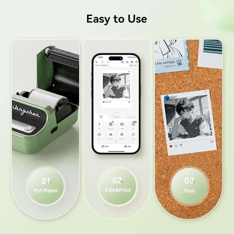 - Reîncărcabilă și eficientă - Echipată cu o baterie de 1500 mAh care oferă ore de imprimare per încărcare; se reîncarcă ușor prin Type-C în 3-4 ore.