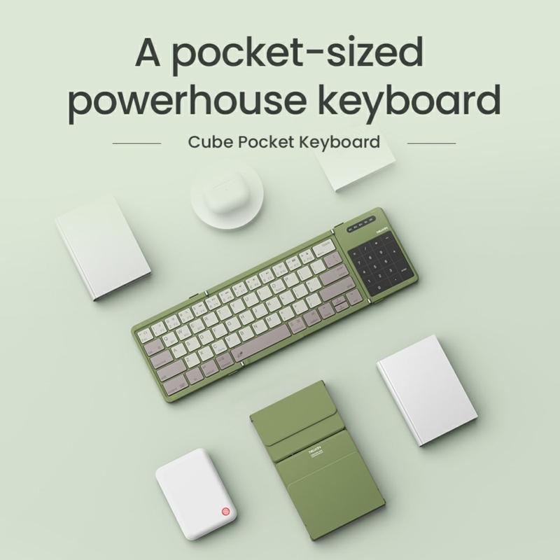 Lucrați oriunde cu tastatura Bluetooth pliabilă Nillkin Cube Pocket, o soluție de tastare compactă și portabilă concepută pentru confort maxim. Cântărind doar 0,226 kg și pliabilă până la dimensiunea unui buzunar, aceasta se deschide într-o tastatură de dimensiuni normale, cu un touchpad de 3,4 inchi pentru o navigare ușoară. Indiferent dacă utilizați un iPad, o tabletă Android, un laptop Windows sau chiar un smartphone, această tastatură asigură o conectivitate perfectă, o durată de viață îndelungată a bateriei și o experiență de tastare confortabilă, fiind perfectă pentru călătorii, muncă și studiu.