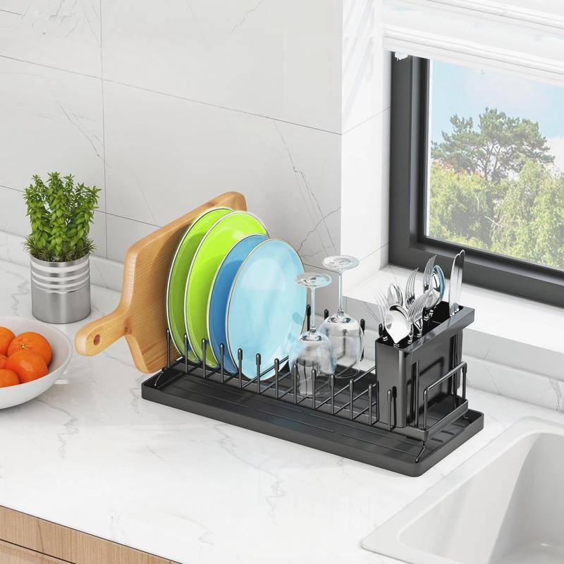 Acest suport pentru vase oferă versatilitate, durabilitate și design care economisește spațiu într-o singură unitate compactă. Structura sa extensibilă și tava de uscare multi-utilizare îl fac perfect pentru bucătăriile mici, în timp ce construcția din oțel carbon asigură fiabilitate pe termen lung. Ușor de asamblat, ușor de curățat și extrem de practic - este un upgrade inteligent pentru orice bucătărie.