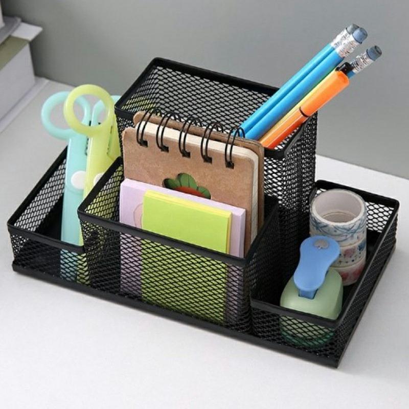 • Organizator de birou cu plasă metalică cu 3 compartimente - spațiu de lucru ordonat, stil instant