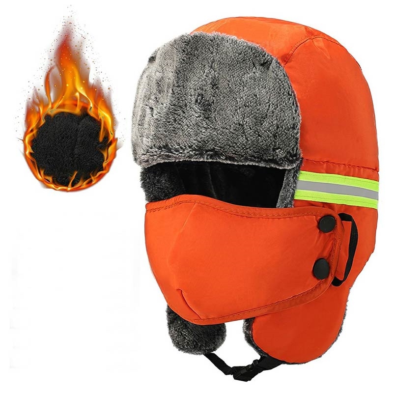 Pălărie de iarnă cu dungi reflectorizante - Pălărie de protecție Trapper căptușită cu fleece