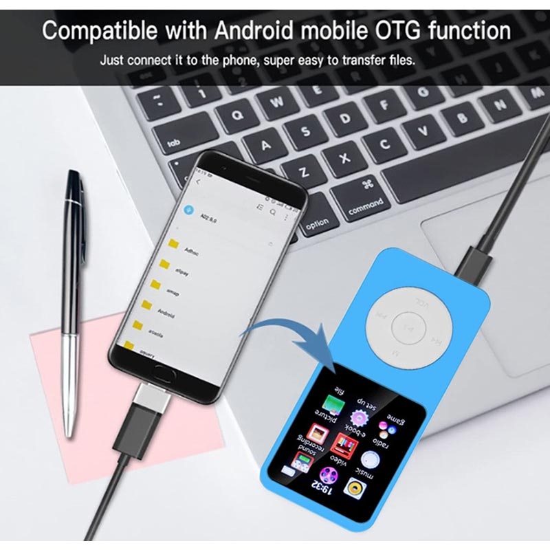 Ecranul de 1.8" vă ajută să navigați cu ușurință printre melodii și setări, iar Bluetooth 5.0 vă permite să vă conectați la căști sau difuzoare wireless compatibile pentru a asculta fără cabluri. Spațiul de stocare este, de asemenea, flexibil: este inclus un card TF de 64GB, iar playerul acceptă extinderea TF până la 128 GB, oferindu-vă suficient spațiu pentru melodii, cărți audio și fișiere. Reîncărcați prin intrarea 5V/1A și reveniți rapid la ascultare cu un timp de încărcare de aproximativ 2 ore.