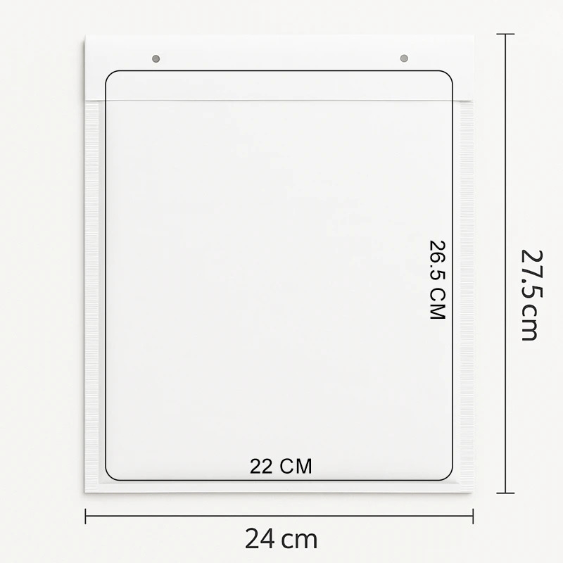 Plicul se potrivește formatului E5 și are dimensiuni externe de 240x275mm și dimensiuni interne de 220x265mm.