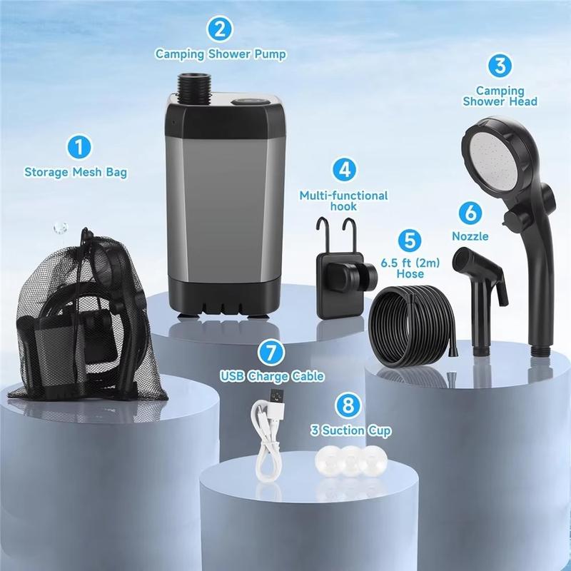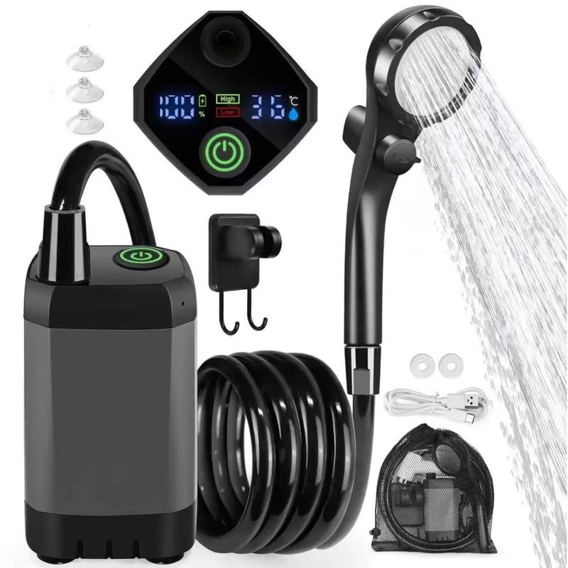 Această pompă electrică portabilă pentru duș este concepută pentru a face spălarea în aer liber mai ușoară, mai confortabilă și mai flexibilă, oriunde te-ai afla. Datorită bateriei încorporate de 6000mAh, protecției impermeabile IPX7 și afișajului digital inteligent, reprezintă o alegere practică pentru camping, călătorii cu rulota, excursii la plajă, drumeții, spălarea animalelor de companie și curățenia în aer liber. Designul fără fir și setul complet de accesorii te ajută să te bucuri de o experiență de duș mai comodă, fără a depinde de o sursă fixă de apă sau de o priză electrică.
