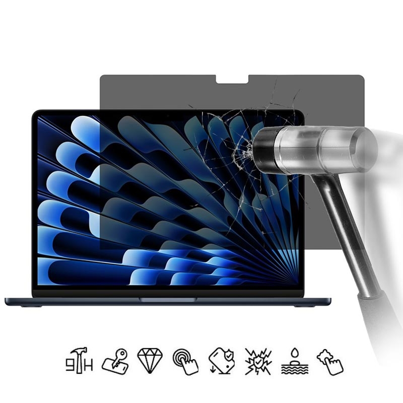 Protector de ecran din sticlă temperată Confidențialitate pentru MacBook Air 13" 2022/2024/2025/2026 - anti-persiprație, acoperire completă, rezistent la zgârieturi și impact