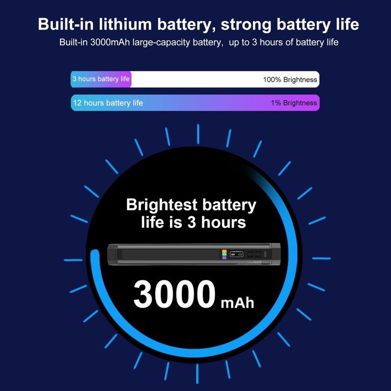 Creați fotografii și videoclipuri mai bune oriunde cu ajutorul luminii LED RGB PULUZ PU4139 de 30cm. Această lumină tubulară portabilă oferă luminozitate reglabilă, control complet al culorilor RGB și o gamă largă de temperaturi de culoare pentru lumină albă naturală sau efecte creative. Magneții încorporați vă permit să o atașați la suprafețe metalice pentru instalări rapide, iar orificiile pentru șuruburi de 1/4 inch de la ambele capete facilitează montarea pe trepiede, mânere sau selfie stick-uri. Cu o baterie mare de 3000 mAh și capacitatea de a funcționa în timpul încărcării, este ideală pentru creatorii care doresc iluminare flexibilă în deplasare.