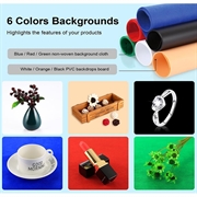 Este livrat cu o geantă de transport și 3 bucăți de planșe de hârtie de fundal (alb, portocaliu, negru). Planșele de hârtie sunt rezistente la riduri și rezistente la apă