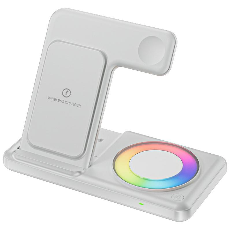 Q50D 4-in-1 încărcător wireless pliabil - stație de încărcare rapidă de 15W cu lumină ambientală RGB