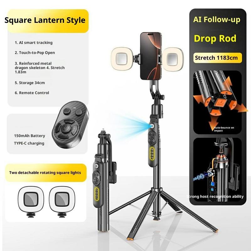 Q625 Quadripod / stick selfie cu urmărire prin Bluetooth și inteligență artificială - Două lumini de umplere în formă de H, Anti-Shake, telecomandă
