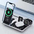 R11 Multifuncțional 4 în 1 încărcător wireless pliabil stație de încărcare portabilă cu afișaj digital, lumină albă, funcție de timp