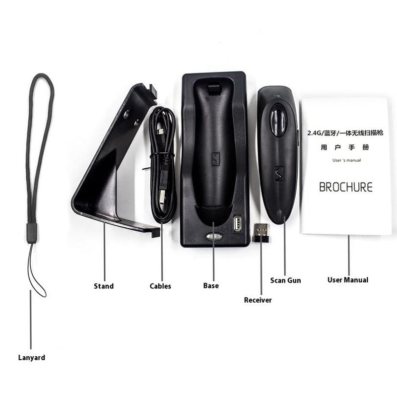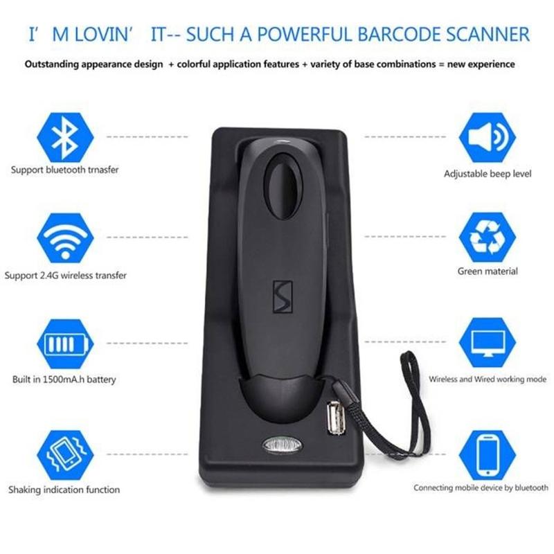 R40 Wireless 2D Barcode Scanner - Bluetooth 4.0 & 2.4GHz QR Code Reader cu bază de încărcare, 1500 scanări/s