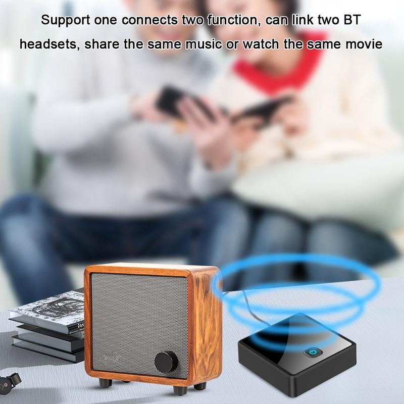 Funcția one-connects-two permite adaptorului să se împerecheze simultan cu două căști Bluetooth, ceea ce îl face perfect pentru partajarea muzicii, a filmelor sau a sunetului TV fără a-i deranja pe ceilalți.