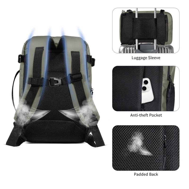 - Dimensiuni pregătite pentru liniile aeriene: Dimensiunea aprobată a cabinei (40 × 20 × 25 cm) se potrivește limitelor de bagaje de mână gratuite Ryanair și Wizz Air.