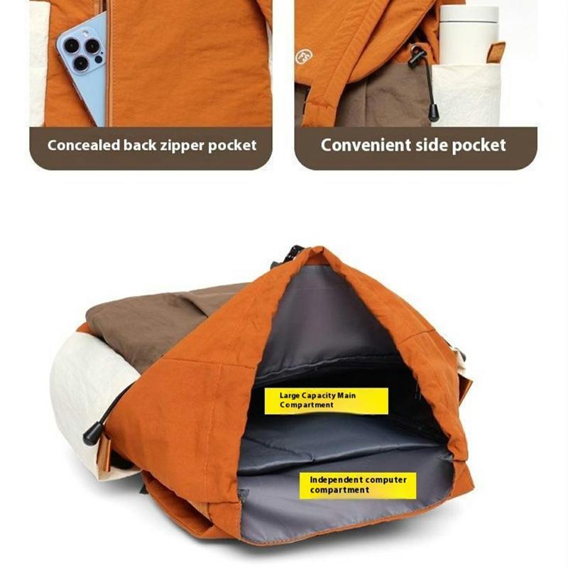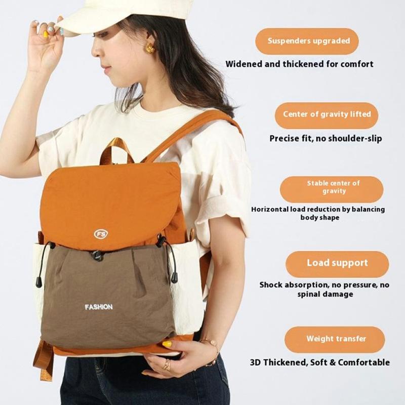 Gențile color block au devenit populare în tendințele modei retro de la sfârșitul secolului al XX-lea, amestecând adesea tonuri de pământ mute și litere îndrăznețe. Astăzi, rucsacurile de zi în stil vintage precum acesta sunt din nou populare, îmbinând nostalgia cu funcționalitatea modernă.