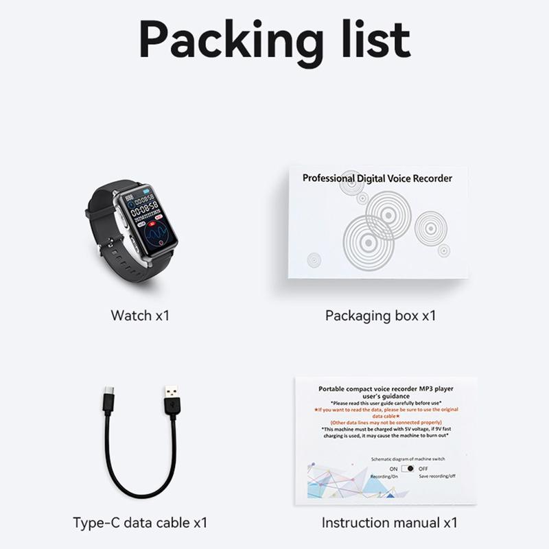 S18A AI Voice Recorder Watch 128GB cu ChatGPT Transcription & Translation - Smart Wearable Sound Recorder