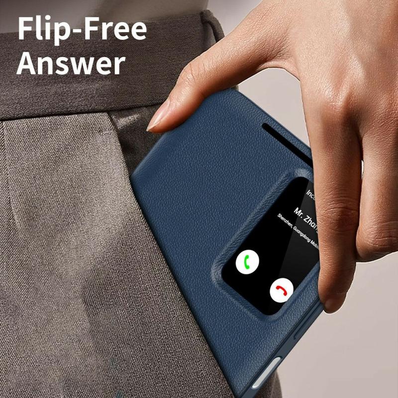 - Gestionare apeluri fără clapă: Fereastra integrată de vizualizare îți permite să primești notificări de apel în timp real și să răspunzi la apeluri fără a deschide husa, asigurând confort și eficiență.