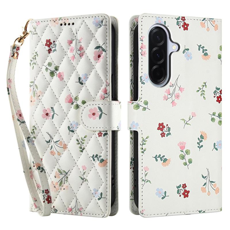 Husă portofel cu motive florale rombice pentru Samsung Galaxy A57 - cu curea și sloturi pentru carduri