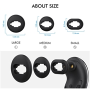 - Trei dimensiuni (S / M / L) se potrivesc canalelor auditive de la 10 mm la 14 mm, asigurând sesiuni de ascultare mai lungi fără puncte de presiune.