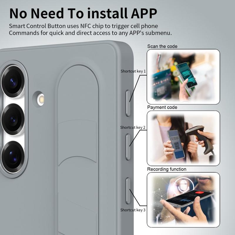 Husă hibridă Smart cu prindere în picioare pentru Samsung Galaxy S24+ - taste de scurtătură personalizabile NFC, brățară Kickstand și protecție pentru cameră din aliaj