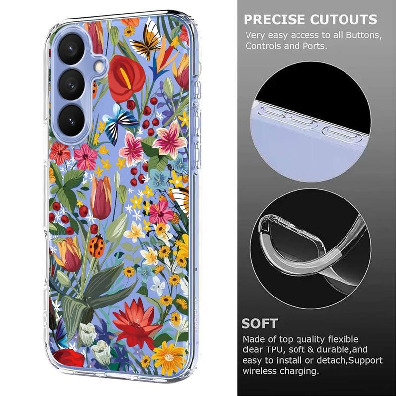 Transformă-ți Samsung Galaxy S26 Pro într-o operă de artă portabilă. Ediția Floral îți înconjoară telefonul cu un decor de vis cu flori de lavandă și fluturi delicați imprimați în cerneluri de înaltă definiție care rezistă la decolorare. Fabricată din TPU flexibil, care absoarbe șocurile, carcasa îmbrățișează fiecare curbă a dispozitivului, în timp ce buzele ridicate protejează ecranul și lentilele camerei de loviturile zilnice. O acoperire mată, anti-murdărire menține designul clar și telefonul fără amprente, toate fără a bloca încărcarea wireless Qi.