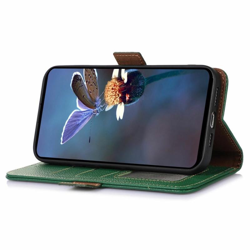 - Piele autentică de calitate superioară - Fabricată din piele de vită de înaltă calitate, cu o textură rafinată, completată de o carcasă interioară TPU durabilă, care menține în siguranță telefonul și absoarbe impactul.