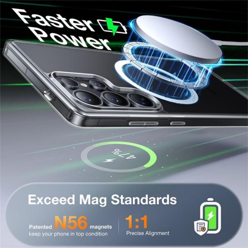 Magneții de înaltă rezistență integrați asigură o conexiune sigură și stabilă cu încărcătoarele magnetice, suporturile auto și alte accesorii compatibile. Alinierea magnetică permite încărcarea wireless fără întreruperi și atașarea fiabilă fără a îndepărta carcasa.