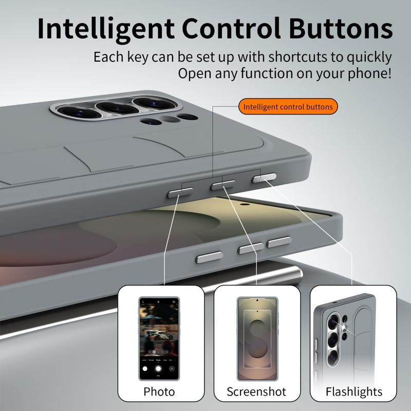 Husă hibridă Smart cu prindere în picioare pentru Samsung Galaxy S26 Ultra - taste de scurtătură personalizabile NFC, brățară Kickstand și protecție pentru cameră din aliaj