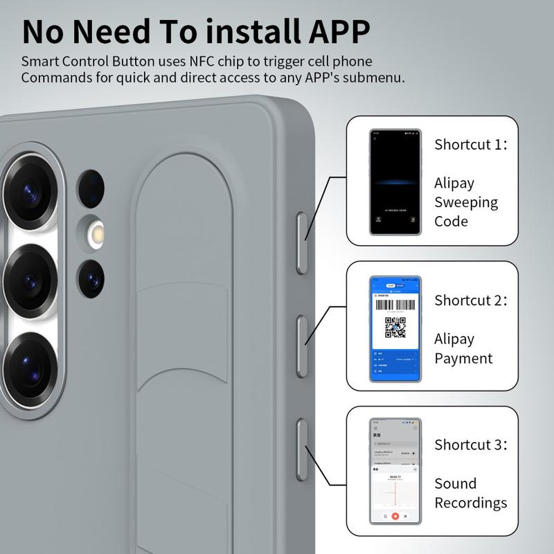 Echipată cu trei butoane inteligente compatibile NFC, această husă hibridă inteligentă vă permite să configurați accesul rapid la aplicații precum Camera, Lanterna sau Captură de ecran cu o singură apăsare. Fără încărcare, fără aplicații suplimentare - doar funcționalitate simplă, instantanee.